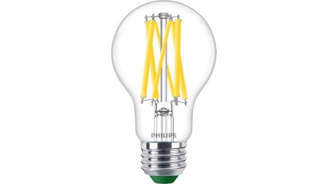 Las lámparas LED UltraEfficient de Philips proporcionan una luz hermosa y excepcionalmente duran más de 45 años, con un ahorro de energía significativamente del 40 %. Reduce la frecuencia de los reemplazos de lámparas y disfruta de una luz que sea agradable a la vista con nuestro diseño EyeComfort de confianza